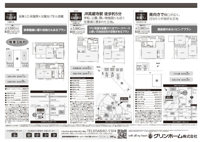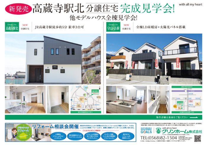 高蔵寺駅北のモデルハウスの内覧や守山区吉根町の建売住宅の内覧ができます。