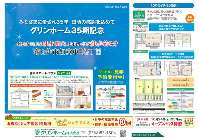 また、10月24日、25日は如意申町2丁目にて、お客様のご厚意によりオープンハウスを開催いたします。