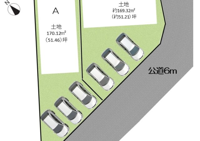 | 敷地面積 | 約169.32㎡(約51.21坪)~約170.12㎡(約51.46坪) |