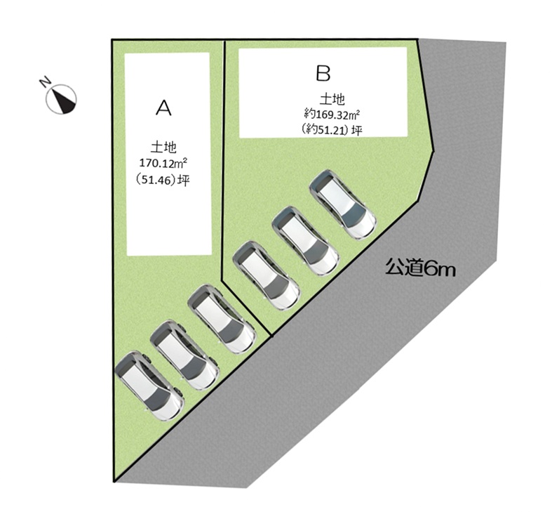 | A区画 | 土地面積: 約170.12㎡(約51.46坪) |